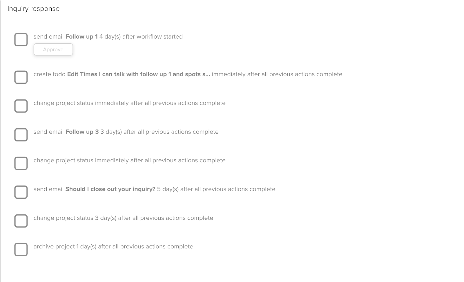 This workflow will walk your prospective clients through several different steps, so you will automatically know where they are in the process. If they still haven’t responded by the end of the workflow, they will be archived. This will make your system look so much cleaner, so you don’t have 1000 different clients stuck in your system who never had the intention of booking.