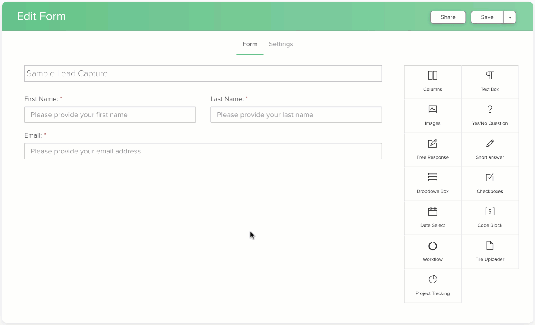 1. Open the lead capture form template where you'd like to connect your workflow.