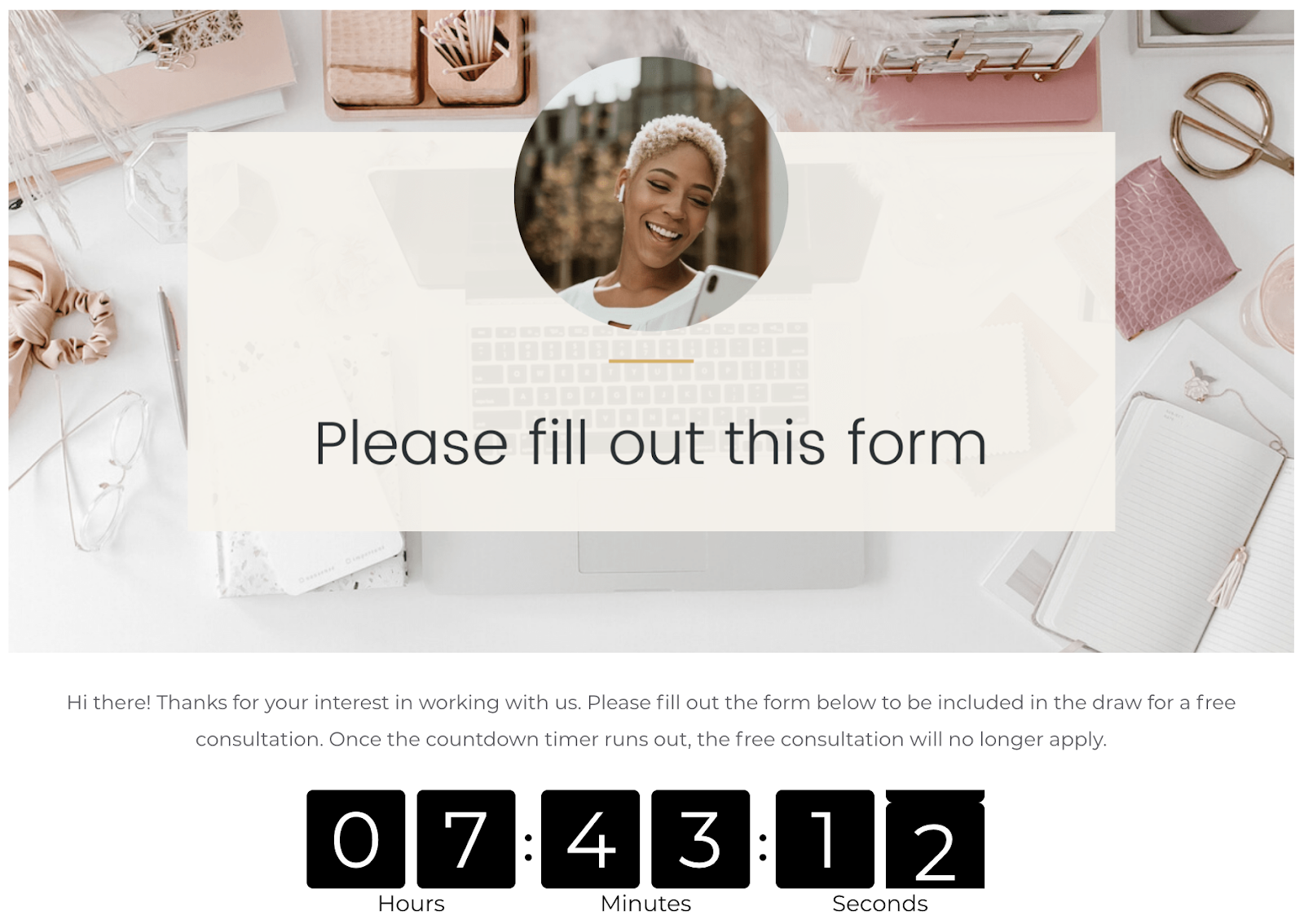 Let’s say you have a sign up form for a consult and you’re running a promo where customers get a free consult if they sign up before the end of the month. Generate that all-important FOMO and urgency that drives visitors to sign up by adding a countdown timer to your form. With POWR and Dubsado it’s easy!