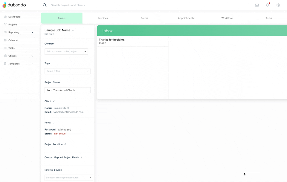 Your client will now show up in Dubsado when you go to PROJECTS under the status you made in step 2.